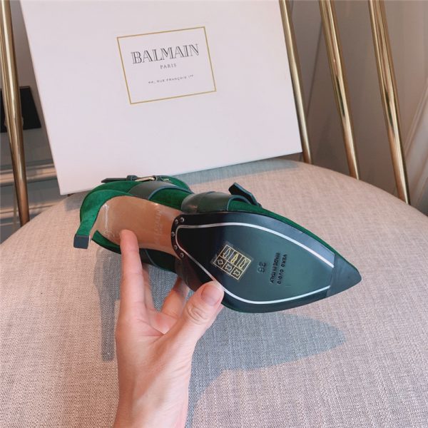 balmain pointed toe belt buckle boots