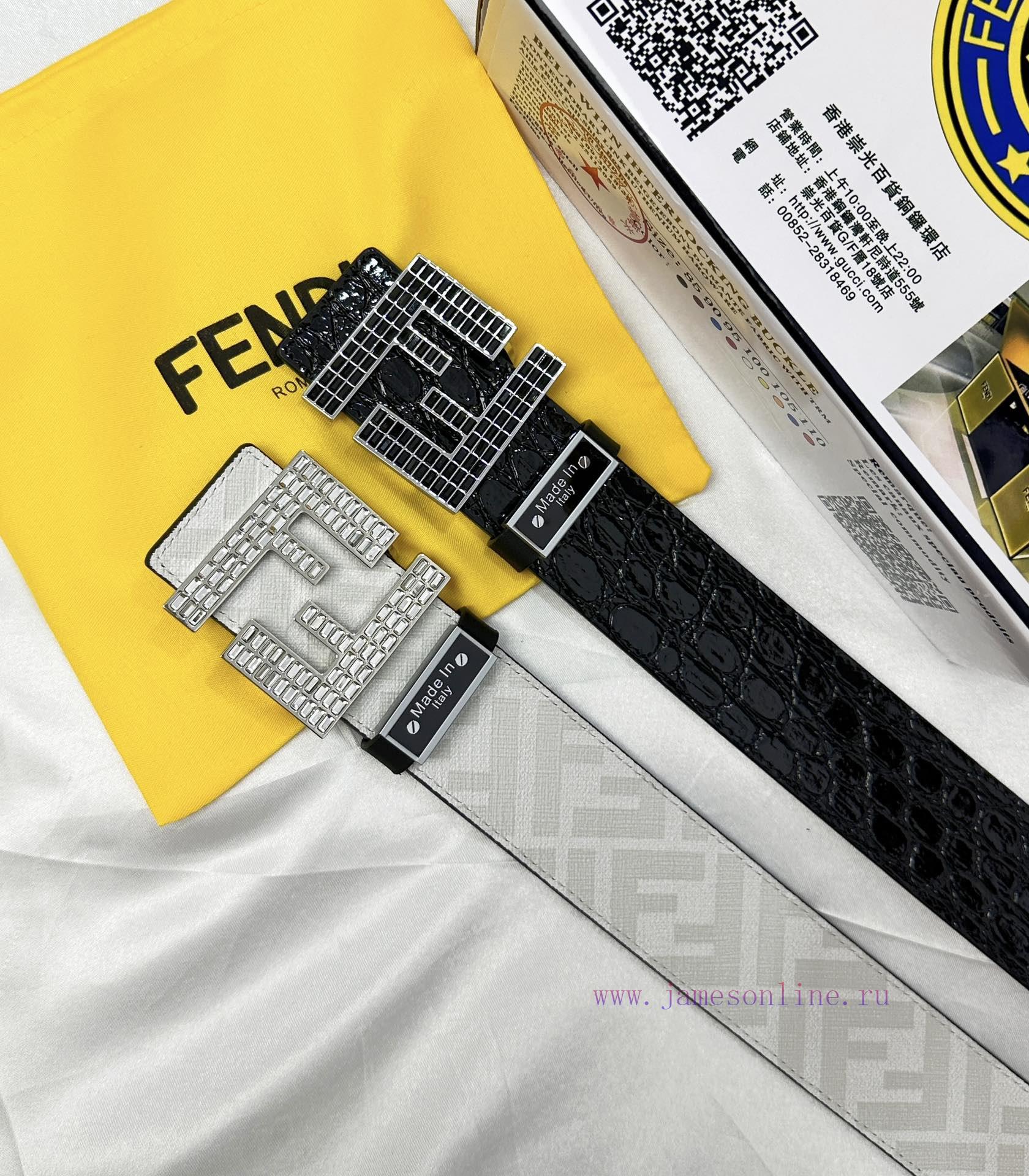 Belt FENDI Fendi ReproductionBelt made of 100% head layer cowhide with crocodile pattern, evenly delicate to ensure genuine leather double-layer FF crystal inlaid with black and white diamonds. Made of 24K pure steel buckle material, it will never fade. Imported calf leather is used on both sides with the same quality as in shopping malls, making it the first choice for gifting and personal useComplete gift box, including punching machine and UnionPay invoice… Width 3.8mm