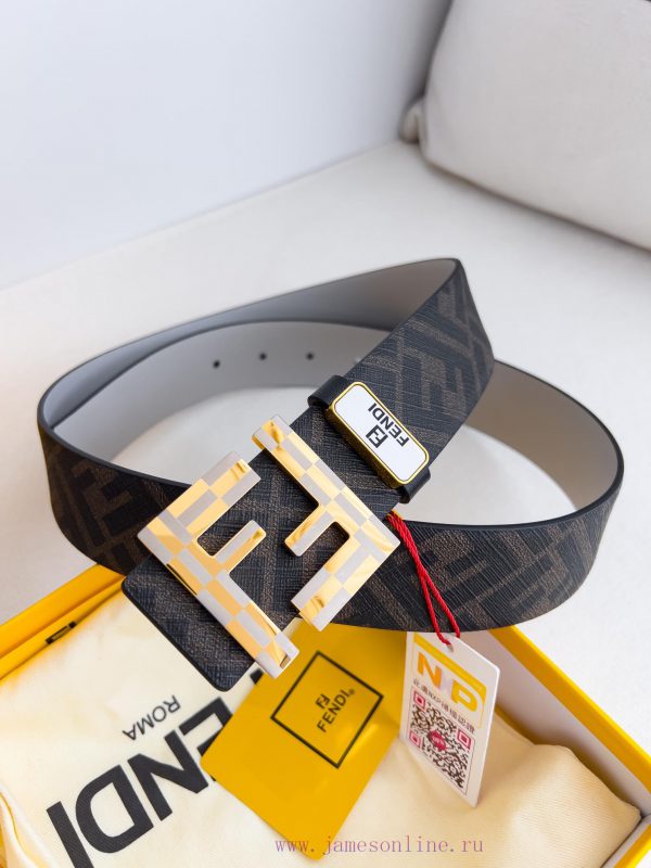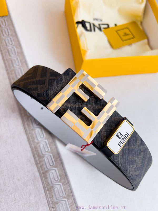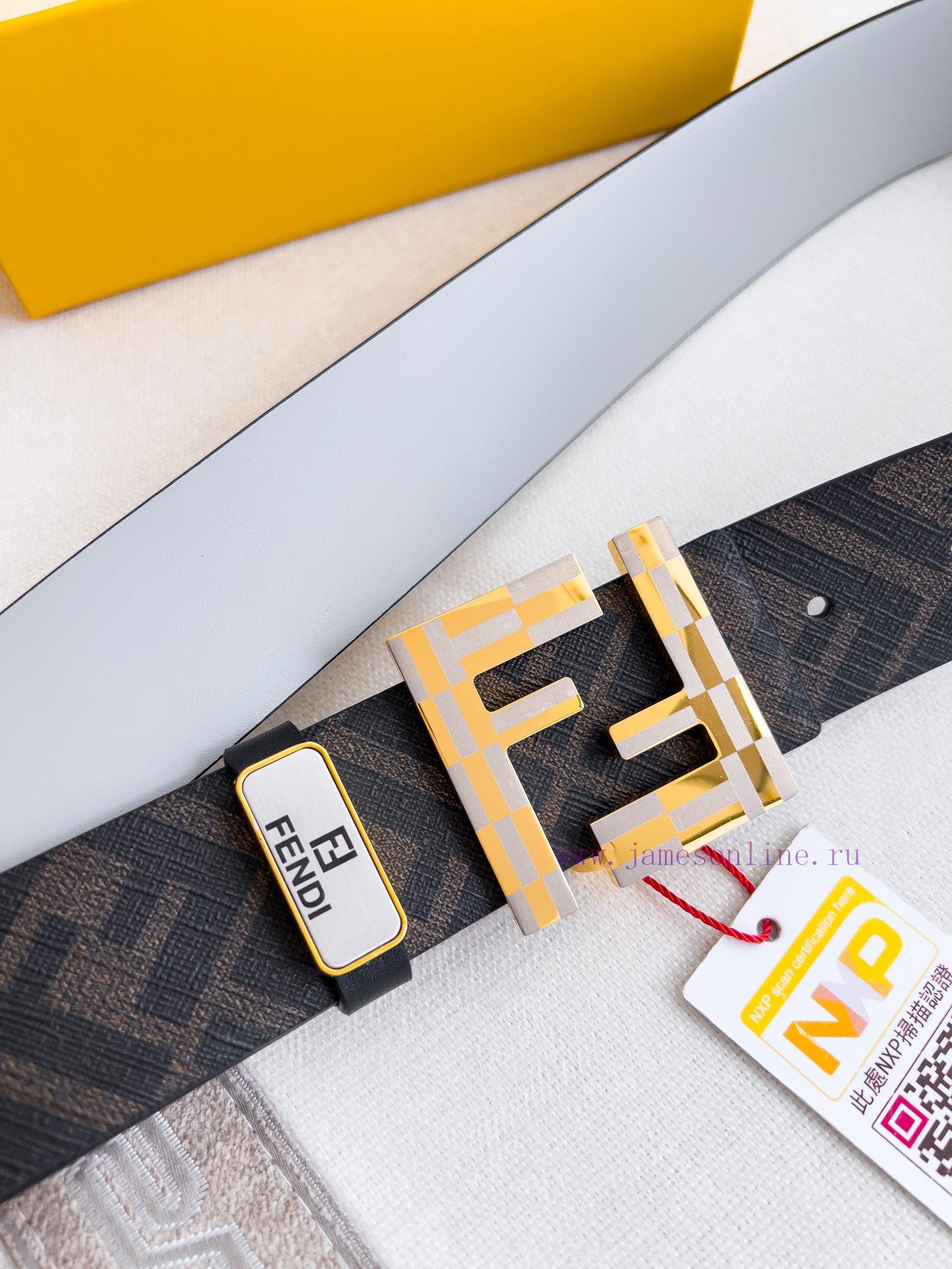 Fendi FENDI ️ Belt and beltBuckle, original classic pure copper boutique letter buckle, photographed in real life, double-sided top layer cowhideMaterial: 100% top layer cowhide, ensuring the same quality as genuine leather, pure copper letter buckle, original pattern coffee flower gray top layer cowhide flat pattern, gold buckle, can be used on both sides, preferred for personal use as a giftNFC tag, free punch, original electronic ticket, width 40mm