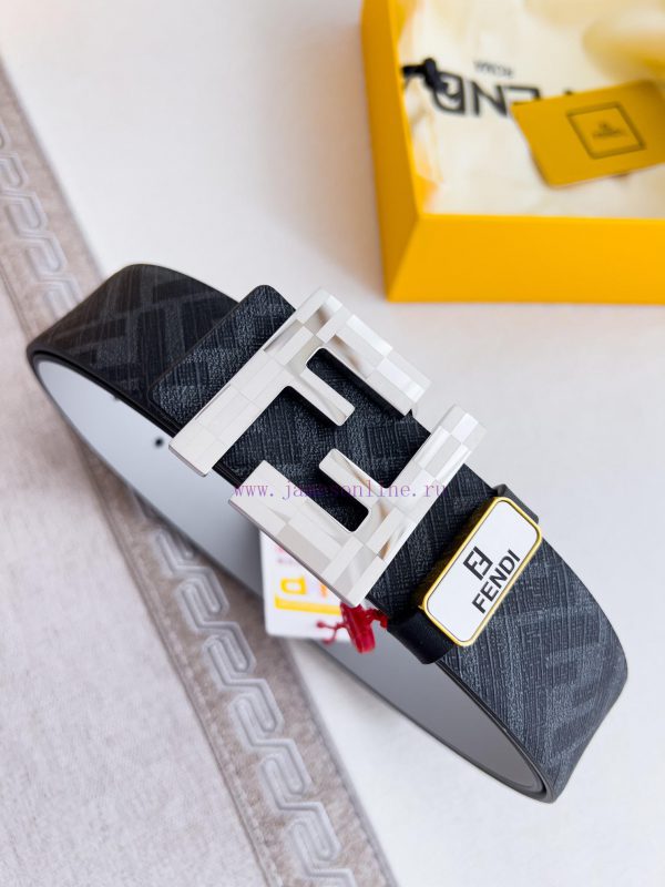 Fendi FENDI ️ Belt and beltBuckle, original classic pure copper boutique letter buckle, photographed in real life, double-sided top layer cowhideMaterial: 100% top layer cowhide, ensuring the same quality as genuine leather, pure copper letter buckle, original black flower gray top layer cowhide flat pattern, silver buckle, can be used on both sides, preferred for personal use as a giftNFC tag, free punch, original electronic ticket, width 40mm