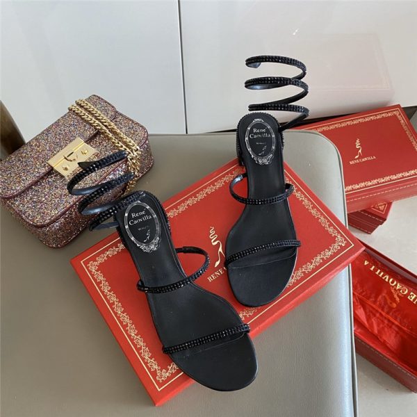Be the first to review “Rene Caovilla Satin Snake-coil Sandals Black” Cancel reply