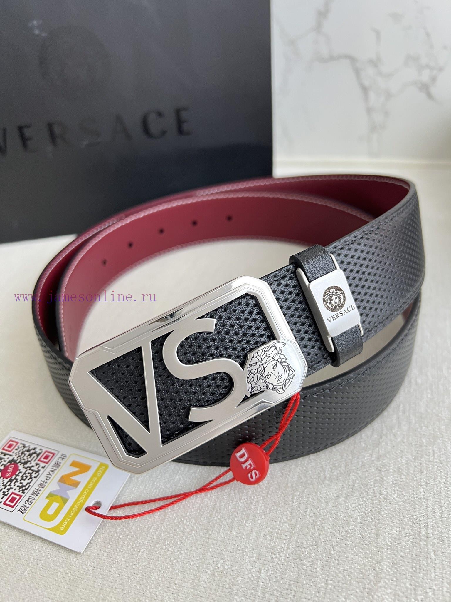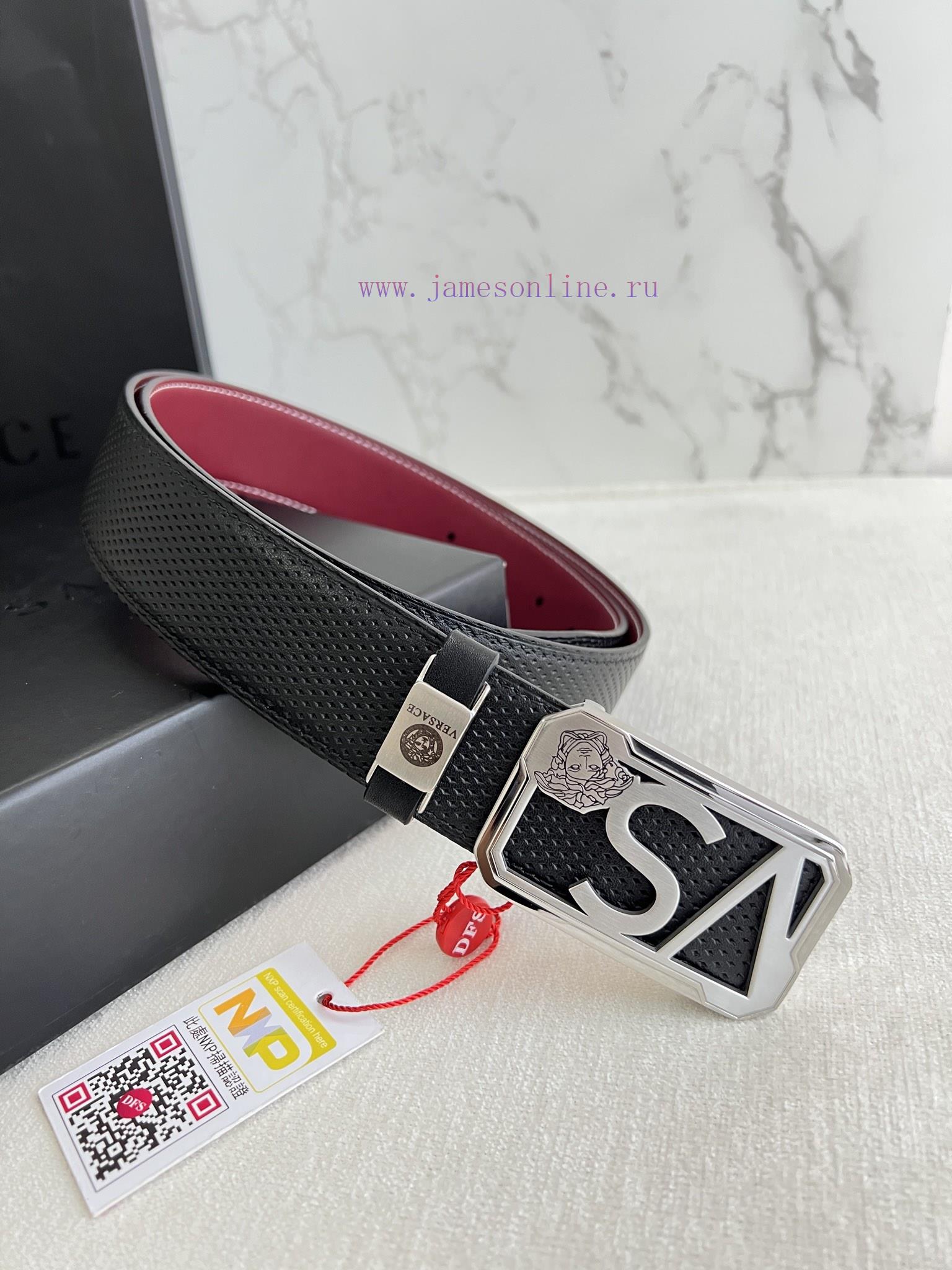 Versace. Versace Belt and BeltsHanging buckle, classic human head made of pure steel material buckle, top layer of cowhide, photographed in real lifeMaterial: 100% top layer cowhide, ensuring that 24k pure steel buckles made of genuine leather can be used on both sides with equal quality. Classic double-sided top layer cowhide printed top layer wine red plain bottom, silver buckle, classic head pure steel buckle head, double-sided available, preferred for gifting and personal useNFC tag, free punch, original electronic invoice, width 3.8cm