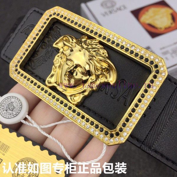 Versace. Versace set with diamondsGrade: Italian imported 100% top layer cowhide, Versace VERSACE, World renowned luxury goods, classic beauty headpieces, imported top layer cowhide, with the same 24K pure steel buckle available abroad. The gold and silver colors are fashionable yet elegant and eye-catching. Pair with trousers and jeans, never fading, and the logo on the back is clearly visibleMaterials: Italian imported original cowhide, original leather+24k steel buckle versatile trousers and jeans, fashionable big brand physical items are more beautiful. Quality delivery includes a full set of gift boxes, punchers, handbags, Hong Kong invoices, and complete customs stickersColor, 3.8mm wide