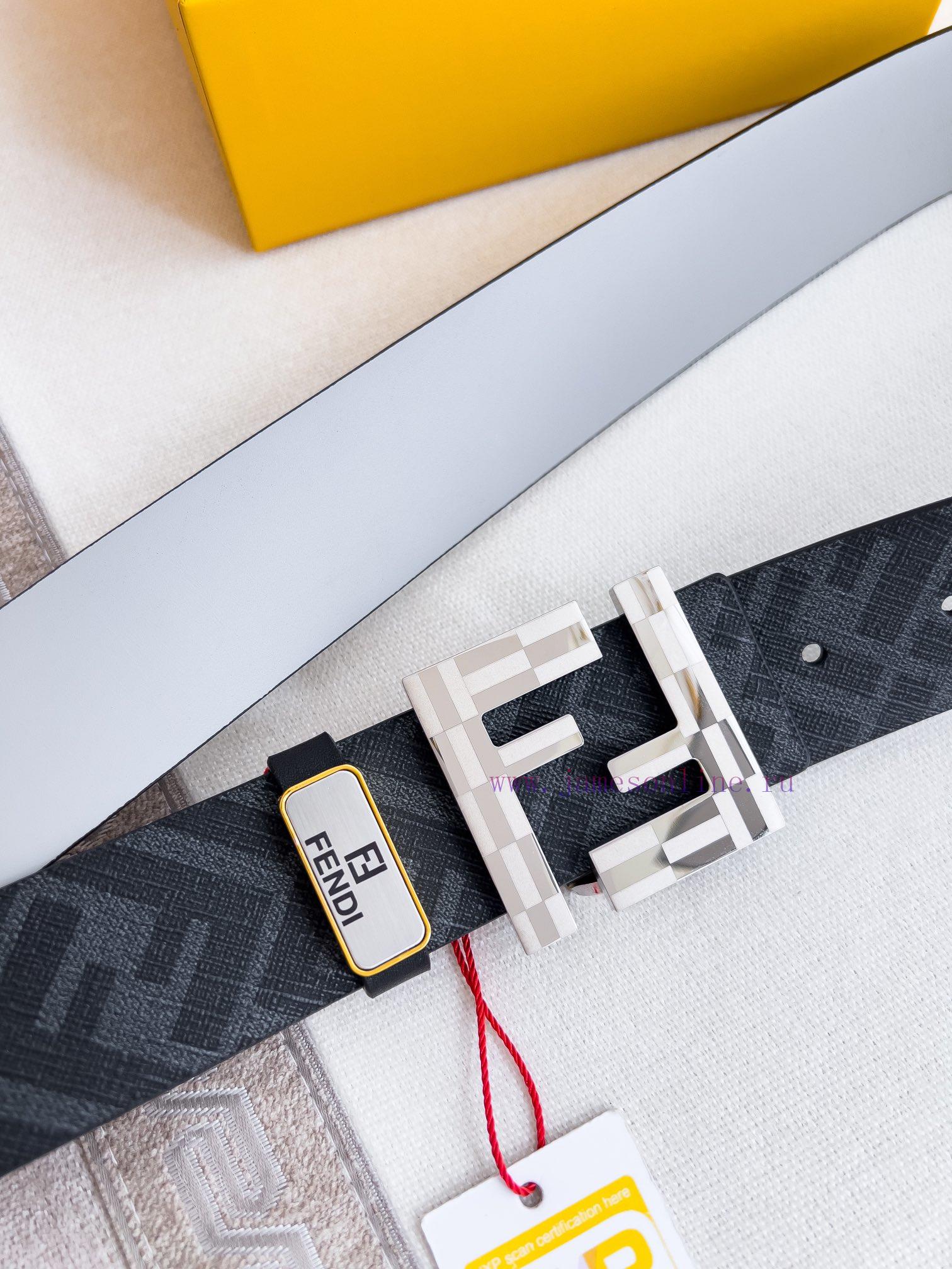 Fendi FENDI ️ Belt and beltBuckle, original classic pure copper boutique letter buckle, photographed in real life, double-sided top layer cowhideMaterial: 100% top layer cowhide, ensuring the same quality as genuine leather, pure copper letter buckle, original black flower gray top layer cowhide flat pattern, silver buckle, can be used on both sides, preferred for personal use as a giftNFC tag, free punch, original electronic ticket, width 40mm
