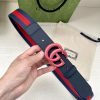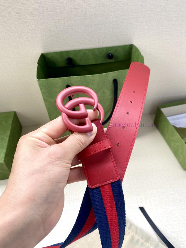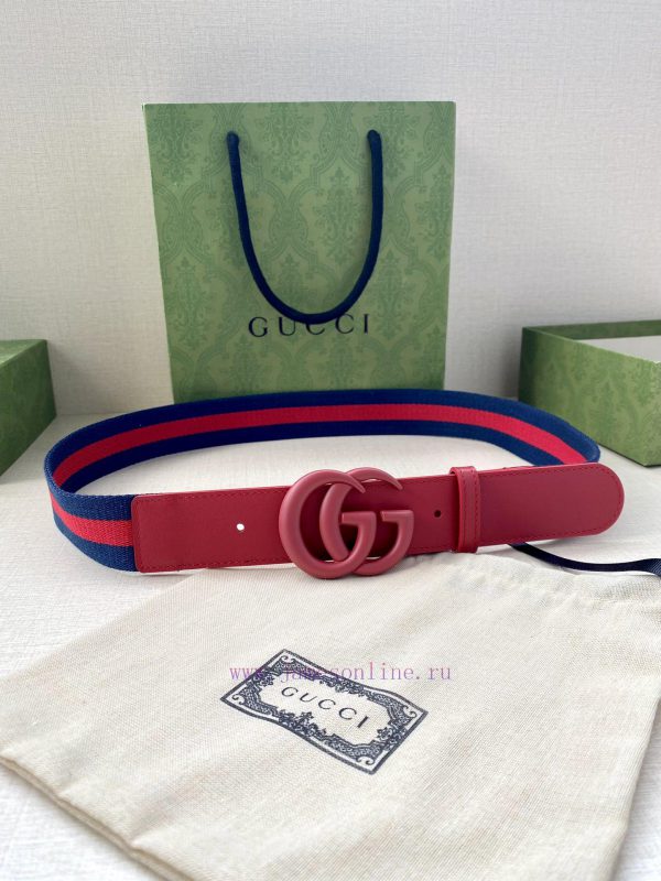 Width 4.0cm GUCCI classic canvas woven belt with woven leather edges and double G-buckles, p ecfnreq0