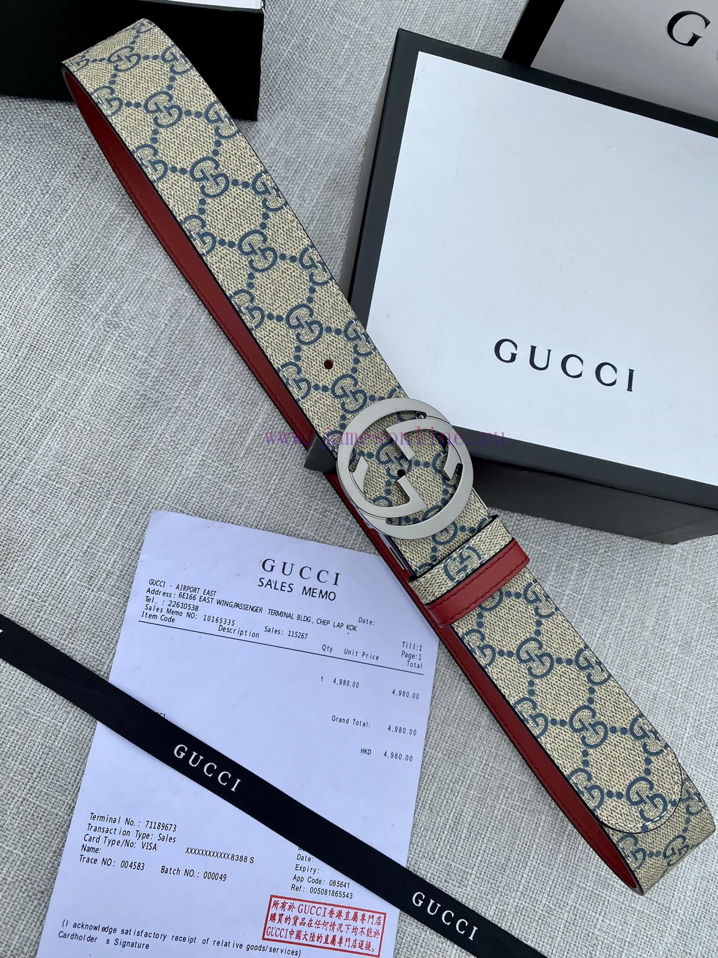COD-Cash On Delivery Available=Αντικαταβολή ΔιαθέσιμηWidth 4.0cm Gucci double-sided belt, with GG Supreme canvas on one side and jujube red top calf leather on the other side, paired with interlocking double G rotating buckle heads that are vacuum electroplated/